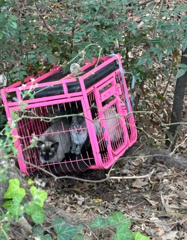 やがて、しばらく進むと、ピンク色のケージを発見。その中には、捨てられた4匹の猫が閉じ込められていたという。